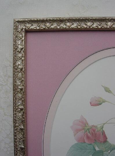 ルドゥーテの薔薇(ルドゥーテローズ)の額絵(オーバルピンクマット・ビクトリアンアンティークフレーム)No.3