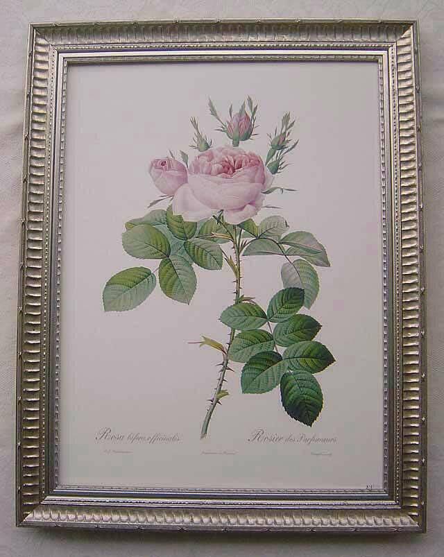 ルドゥーテの薔薇(ルドゥテローズ)の美しい大判の額絵です。ボタニカルアート(植物画)の頂点をきわめ、「花のラファエロ」とも賞賛されている天才画家、ピエール・ジョセフ・ルドゥーテの作品の中から、香るように美しいルドゥーテの薔薇の絵を厳選して、ヨーロピアンアンティークの素適な雰囲気を持ったアンティークシルバー・フレーム(アンティークではありません。)で額装されている大判の美しい額絵です。