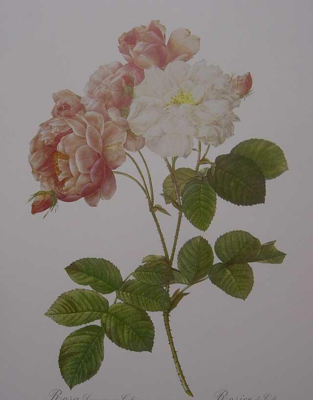 ボタニカルアートを描いたベルギーの天才画家、Pierre Joseph Redouteの描いたオールドローズの額絵と他の作家