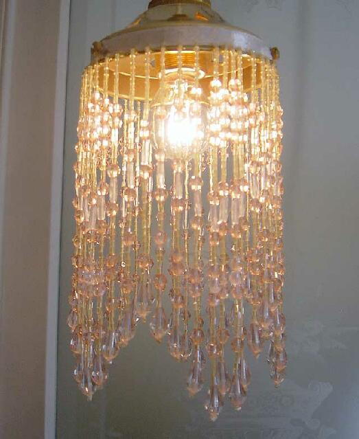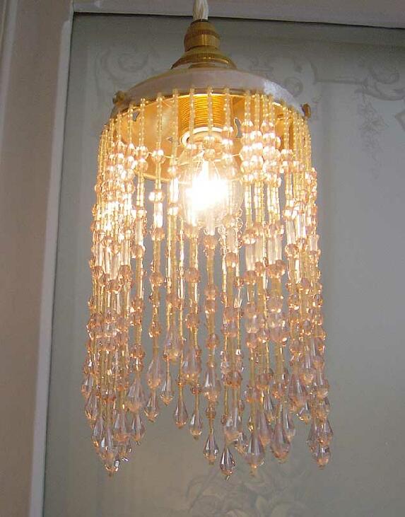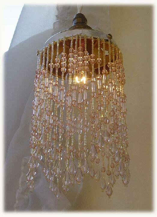ビーズ飾りの美しいビーズランプシェード、ビーズシェード、ビーズペンダントライト、ブラケット