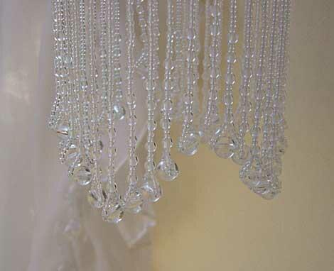 繊細なガラスビーズをたっぷり使って作られているビーズランプシェード(クリスタル・レインドロップ)。