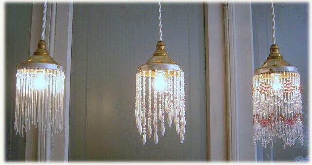 ビーズ飾りの美しいビーズランプシェード、ビーズシェード、ビーズペンダントライト、ブラケット