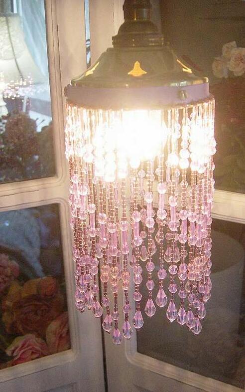 ビーズ飾りの美しいビーズランプシェード、ビーズシェード、ビーズペンダントライト、ブラケット