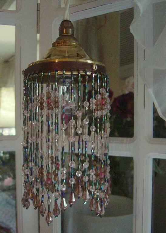 ビーズ飾りの美しいビーズランプシェード、ビーズシェード、ビーズペンダントライト、ブラケット