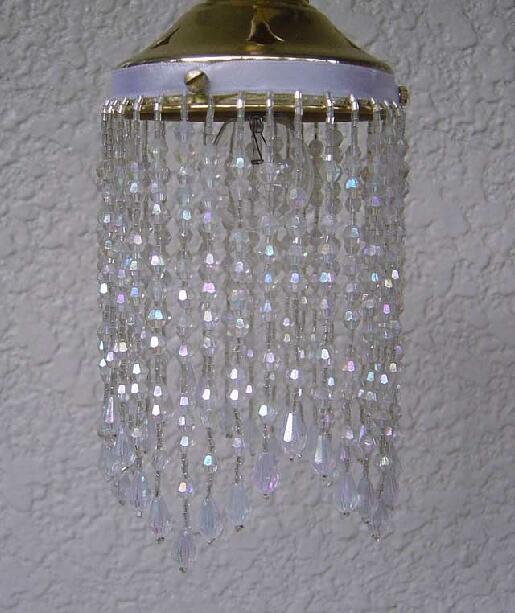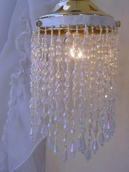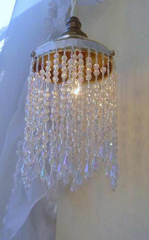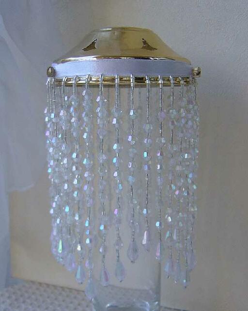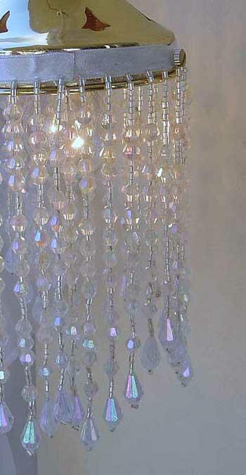 ビーズランプシェード(ホワイトオパール)。きらきらと虹色にきらめくロマンティックな美しさのある大変素敵なビーズランプシェード・ホワイトオパール。フランスのアンティークの雰囲気を再現させたビーズランプシェードです。