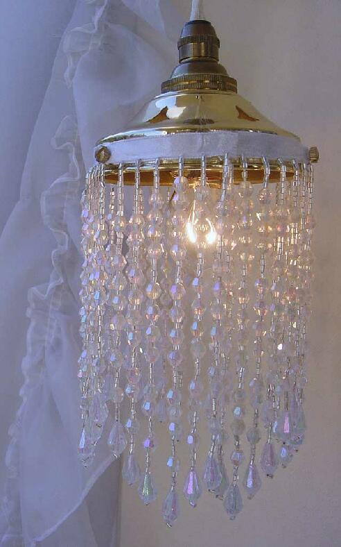 ビーズ飾りの美しいビーズランプシェード、ビーズシェード、ビーズペンダントライト、ブラケット