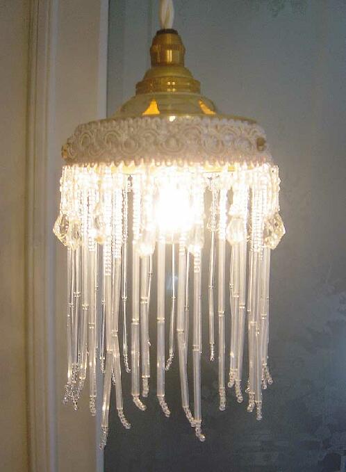 ビーズ飾りの美しいビーズランプシェード、ビーズシェード、ビーズペンダントライト、ブラケット