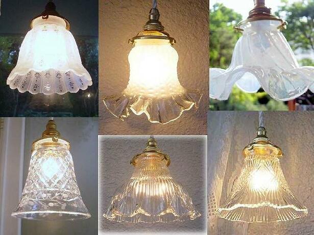 別館ミルクガラスシェード売り場以外に、English Rose Cottageのガラスランプシェード売り場でご紹介しているフレンチアンティークスタイルのガラスシェードのほとんど全てにお使いいただけます。