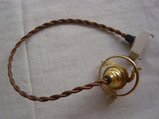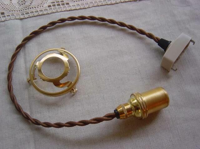 ** お奨めのポイント ** 以下の画像の○で囲んだ部分をご覧いただけると分かるように、真鍮のソケットの上のネジまで真鍮でできており、日本でよく見かける黒いプラスチックのネジのついたコード器具と比べて、ヨーロッパのアンティークデザインが生かされて大変素適です。真鍮のソケットは年月の経過に伴い、空気にさらされていくうちに、ソケットがアンティークな味のある雰囲気に色合いが変化してゆくのも楽しみです。細めのツイストコードもヨーロピアンアンティークを再現していて素適です。