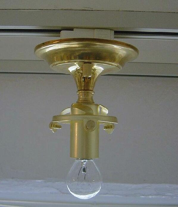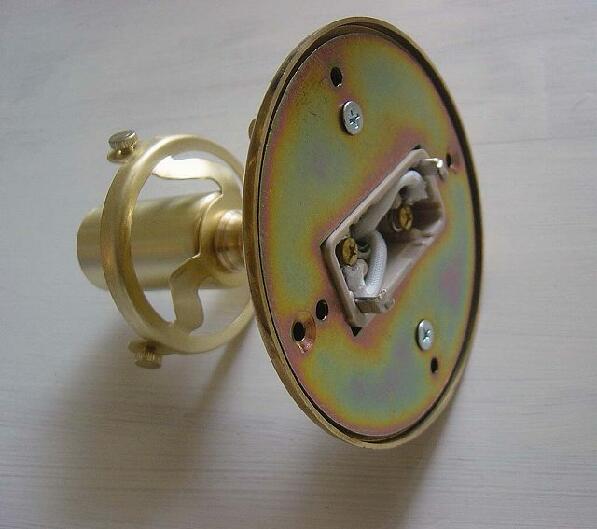 真鍮台座の中は引っ掛けシーリングに加工済みです。* 電球は付属していませんので、E17口金サイズの電球(ミニクリプトン球、シャンデリア球他、蛍光灯球、LED電球も口金サイズがE17サイズのもの(60Wまで)をお使いいただけます。)を電気屋さんでお求めの上、ご使用くださいね。(弊ショップではE17 40Wまたは60Wのミニ丸球または40Wのシャンデリア球をご用意しておりますので、御希望の場合、ご注文時に通信欄でお知らせください。)