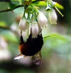 ブルーベリーの花が咲きはじめると、ブ〜ンという羽音と共にやってくるのが、アーモンドのように大きな黒いつやつやした目にオレンジ色のブルマーのようなパンツをはいたあの子です. ころころに太ったおなかに、もこもことした黒い上質のビロードのようなジャケットを着込んでいます。 名づけて”我が愛しのブン太郎”. 大きさもさまざま、まだ小学生のように小さな子もいれば、お兄さんのようにがっしりした体の大きな子もいるし、お母さんのように優しいまなざしの子もいます。 ちょっと縞の入ったオレンジ色のパンツがまるでトラの子供のように可愛くって..。