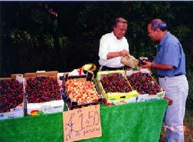 ヒースロー空港からスコットニーキャッスルガーデンに向かうドライブの途中、喉の渇きを癒すために道端で屋台を広げているおじさんから、ブラックチェリーを買いました.旅行中の買い物やレストランでのオーダーは全て英語の全然話せないpekoちゃんが頑張って担当します。 「Hello !」と満面の笑顔で話し掛けた後、(pekoちゃんは本当にフレンドリーでいつも笑顔の温かい人です。)、「This one, please.」と、どこでもリラックスして、手振り身振りを加えながら、ひとときのコミュニケーションを楽しみます.イギリスの人はホスピタリティーに溢れた方が多くて、別れ際ににっこり微笑みながら、「Have a nice trip !」とか「Have a good day !」と言ってくれるので、とっても温かい気持ちになります.