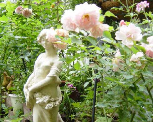 ...そして、もう5月も終わろうとしています.薔薇の一番美しい5月なのに、ショップのオープン準備etc.に追われていて、ちっともガーデンエッセイを書けないでいました。4月の中旬から咲きつづけていたつる薔薇スパニッシュビューティーもすっかり咲き終わり、咲きがら摘みをした枝先から新しい若葉が芽をぐんぐん伸ばし始めています。ちょっと目を離していたすきに、殺虫用の農薬を一切使わない我が家の庭は虫達のパラダイスとなってしまっているみたいです。