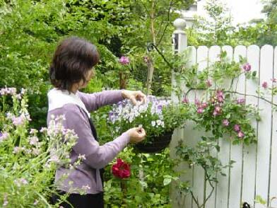 pekoちゃんが日課にしている草花達の咲きがら摘みをちょこっとだけ,お手伝い.
