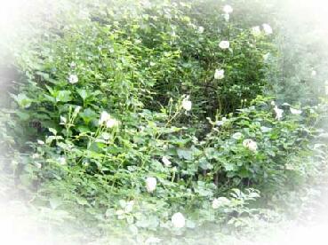 5月も下旬が近づき,ブン太郎の活躍により,ブルーベリーもたくさんの実を重たげに膨らませているので、夏の収穫が楽しみです. 日当たりが悪いため、開花の一番遅い奥のホワイトガーデンの白薔薇たち(アイスバーグ,グラミスキャッスル,他)がここに来てようやく今シーズンのピークに向かっています.