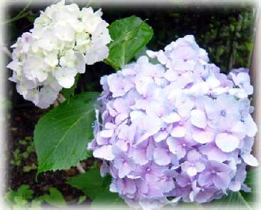 そして、ホワイトガーデンがひと時ブルー&ホワイトガーデンとなる6月の主役、大好きな紫陽花。 白から優しいラベンダーブルーに変わった後,アンティークな雰囲気の赤紫を帯びたアンティークピンクに色変わりして,梅雨でどんよりと曇ったお庭を明るく彩ってくれる貴重な存在です.