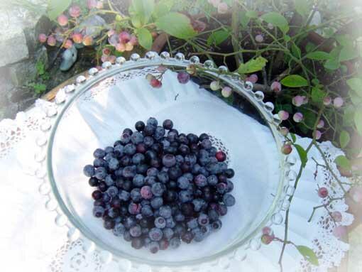 ちなみに我が家のブルーベリーは倭性の低木種ティフブルーとホームベルです.ティフブルーのほうが花も実も大きく、ちょっぴり太っちょさんです。庭の奥、ホワイトガーデンの手前に2mくらい離して置いていますが、春に咲く、鈴蘭を思わせる可愛らしいベル型の花から晩秋の紅葉まで庭を彩りながら、かつデリーシャスな味覚も提供してくれる貴重な子達です.薔薇と違って、病気にかかる心配も殆どなく、手が本当にかからないので、こんなに花壇に薔薇ばかり植えてなければ、地植えでいっぱいブルーベリー花壇を作ってしまいたいくらい.(秋の紅葉の燃えるようなRedの美しさは又、ガーデンダイアリーでお知らせしますね.)