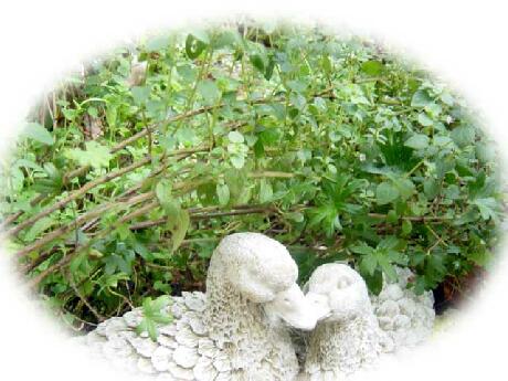 下の写真は八角のハーブ花壇のオレガノです。風の強く吹くK's Rose Gardenで、伸びては風に株元から倒され、また起き上がって伸びては倒れ、倒れた茎の芽からたくさんの新しい新芽が伸びて、夏の終わりのこの時期、うっすらと紫がかった白い小さな花をたくさん咲かせている頑張りやさんです。