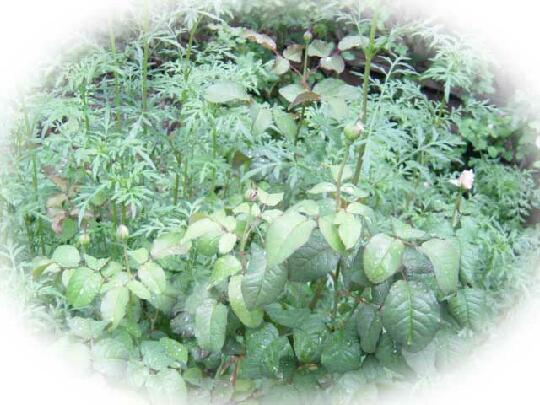 シャリファ・アスマの横に去年植えたウインター・コスモスが大きくなりました.たくさんの蕾を付けているシャリファ・アスマの優しい少女を思わせるソフトな薔薇色と山吹きかかったイエローのコスモスが競演するとどんなカラーハーモニーを描くのでしょうか? 楽しみです.