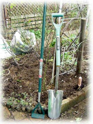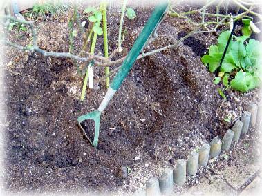 特に冬に幹を固くする硫酸カリは微小とはいえ、単独での使用には向かないため、他の有機肥料としっかり混ぜ込みます. ここで活躍するのはイギリス製のスコップ君と共に私にとって大切なお助けマンであるやはり生粋のイギリス生まれのダッチホー君です。イギリス製のスコップ君にはいつも苦労をかけるので、今や柄も途中で曲がってしまい、深いキズが一杯ついてしまって...。 本当にごめんね。ねぎらいのご褒美を考えてあげなくてはね.