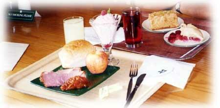 私は骨付きハムとフルーツチャツネとポテトとパン、それにガーデンの果樹園で取れたラズベリーのデザートにレモンジュース、pekoちゃんはラズベリーのパイにフルーツケーキ、それにクランベリーのジュースです。(pekoちゃんはいつも甘いものを控えなければいけない、とお医者さんに言われているのに、困ってしまいます。)