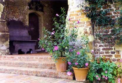 1490年頃に建てられたという古いレンガ造りの建物の中を抜けて、庭へ。