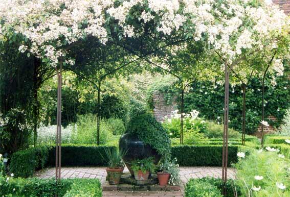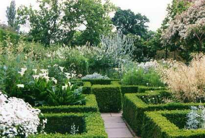 ツゲのエッジで仕切られた各ガーデンは小部屋のような空間にデザインされています。