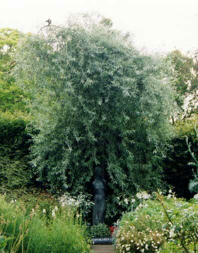 ホワイトガーデンを抜けると、イチイの並木の向こう側は広い原っぱに果樹が植わっています。