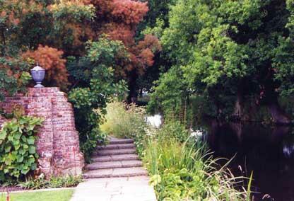 ガーデンの突き当たりは川が流れていて、川辺に沿ってフットパスになっていて、ウォーキングに訪れる人も多いようです。