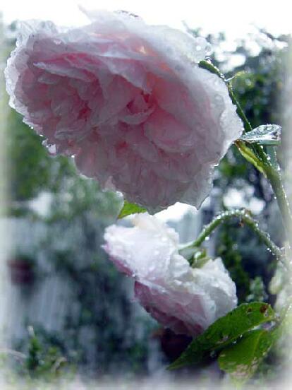 お庭の花壇では、こんな恐ろしい強盗事件の起こったことなど、知らないバラたちが時折、降る雨の中でも楚々と、咲き続けていました。
