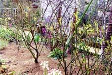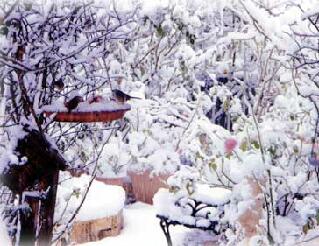 んごやバナナを突っつきにやってきた早起きのメジロ君たち. ![]() 普段は庭のあちこちに見張りを立てて,ほかの小鳥たちにフルーツを食べられないよ う,庭の番人を自負しているヒヨドリたちは今朝は朝寝坊みたい. 皆で仲良く,食事してほしくて開いている小鳥のレストランなのに、ヒヨはちっとも分かっ てくれないの.ツグミもシジュウカラもメジロもコマドリもみんなで分け合って仲良く食事が できるのにみんなが楽しんでいるところへ、ヒヨは騒がしく鳴いて森の高い木から急降下 しては,平和に過ごしている小鳥たちを荒々しく追い立ててしまうのです.そして小さな子 達のために,こっそり置いた小さな子達しか留まれないバードフィーダーにも落ちそうに なりながら,つかまって自分の縄張りにしてしまうの。 ヒヨ君,いつになったらわかってく れるのかな? テーブルが小さすぎて止まるとフルーツを突っつけないので、キツツキ君のようなポーズでつかまるの 進むことでしょう.皆、床屋さんも終わってこざっぱりとした装いで冬の眠りについていま す.1年中咲き続けるので、最後まではさみを入れられなかった、チャールズやアイスバ ーグもようやく皆に一足も二足も遅れて大急ぎで寝かしつけたので、皆すっきりとして、絢 爛豪華な春の風景と打って変わった風景になります. 緑の葉っぱがみずみずしく元気なのは ジ ギ タリスの赤ちゃんたち. 3月になると、誰よりも早くぐーンと力強く伸び上がってきま す. 草花たちは皆、眠っているように見えても、お腹に目 覚まし時計を持っているのよ. ![]() ゲラニウムやフロックスなどの宿根草も地面にへばりついて、冬ごもりです。 ![]() 冬は庭の構造がむき出しになるので、ハードの部分を見直すのに良い時となります。 ![]() 2月も中旬が過ぎて、日の光も春の近づいていることを知らせてくれるようになると、眠 りについていた薔薇たちは可愛らしいベビーの薄緑色のお手てをグーンと伸ばし始める の. 小さくニギニギしたお手てをやがてパッともみじのように開くときの可愛さを知ってい ますか?