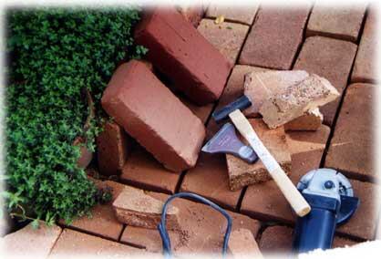 沿っての不揃いな空きスペースへのレンガ敷き. ![]() ![]() ![]()