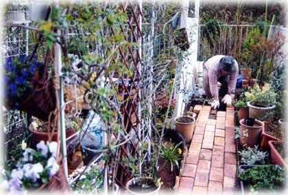 かが結構大変です.春爛漫の時期だから、お庭のコンテナ植物へのお水やりも必要だ し、ベランダの階段を下りるたびにせっかく敷いたレンガがずれてしまいそう...。