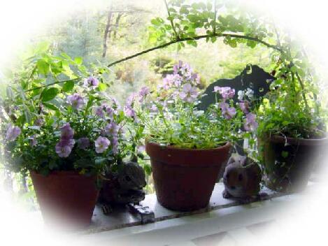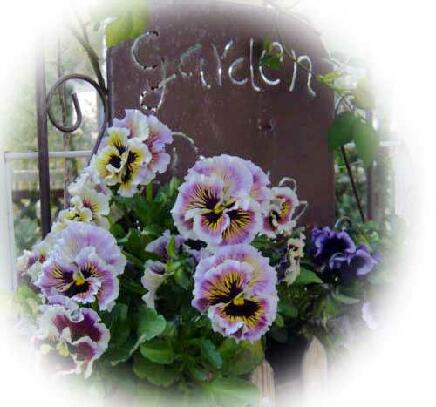 (お庭では薔薇の咲く前、パンジーたちがファンタジックに咲き続けて、私たちの目を楽
