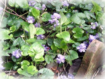 (3月、アーチの足元にこぼれるように咲く、可憐な匂いスミレ)