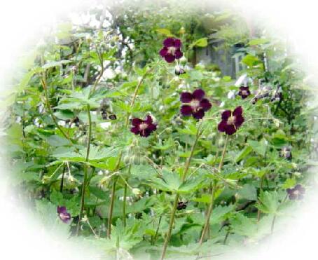 した.傍らのスーベニールの蕾が膨らんで咲く頃には、淡いパウダーピンクのティッシュ ペーパーのように優しい色彩と黒花フウロソウのシックで落ち着いた花びらが素適に調 和する風景がまたとっても楽しみ...。) ![]()