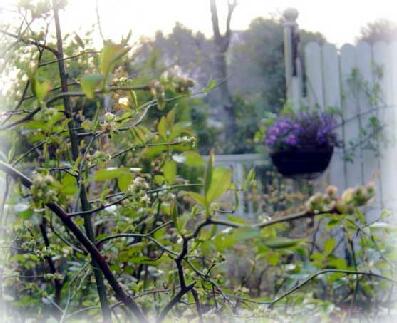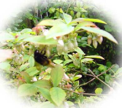 もうじきブルーベリーの蕾が開きそう...、ブン太郎はそれを待っているみたい。