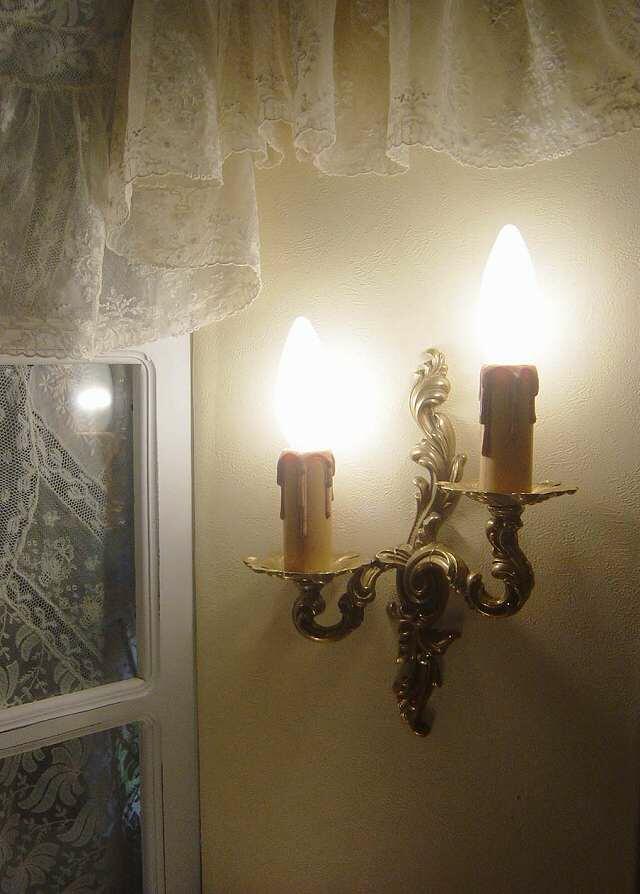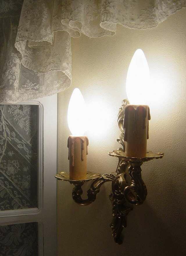 40Wのシャンデリア球が2個付属しています。(* こちらのブラケットの場合、一般に市販されているE17サイズのシャンデリア球40Wがお使いいただけます。)