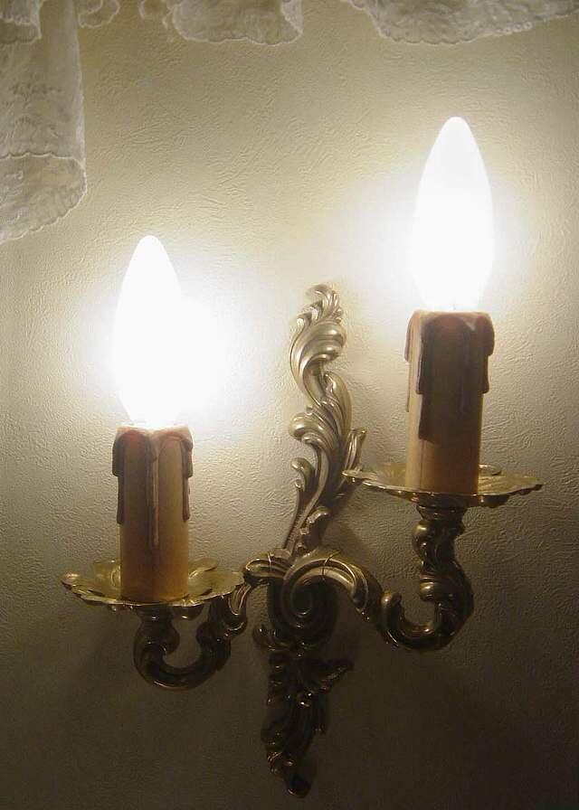 ィーク照明器具を再現した真鍮のブラケット照明器具(ウォールランプ、ウォールライト)、オーナメントのきらめきの美