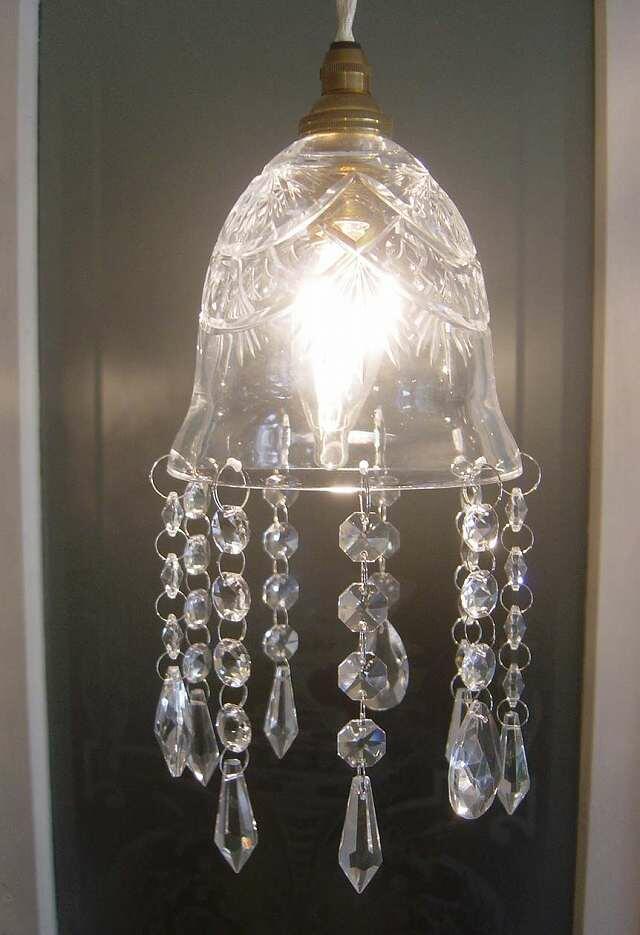 フレンチアンティークスタイルのお部屋にお奨めのクリスタルガラスのオーナメントの煌く小さなガラスシャンデリア・ランプ(ホワイトコード付き)のご紹介。