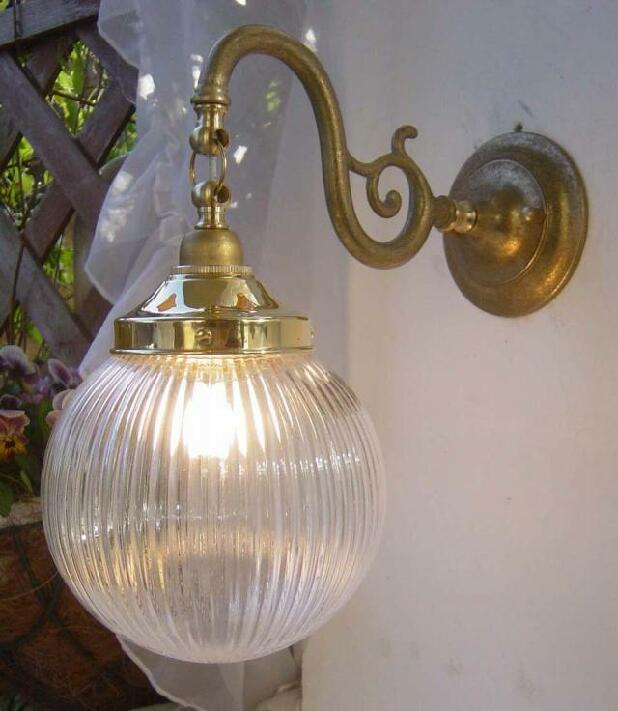 アンティークスタイルのブラケットライト(ウォールランプ)照明器具。 アンティーク仕上げの真鍮ブラケットライト(ウォールランプ)と大正ロマンな雰囲気を持つレトロなガラスボウルのランプシェードCLBのブラケットセットです。真鍮のブラケットはシャビーなアンティーク仕上げとなっています。