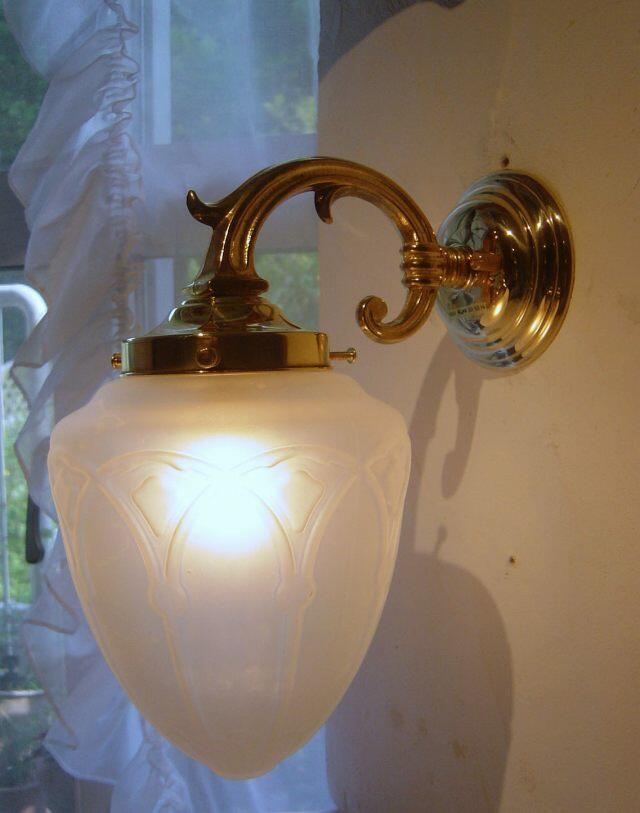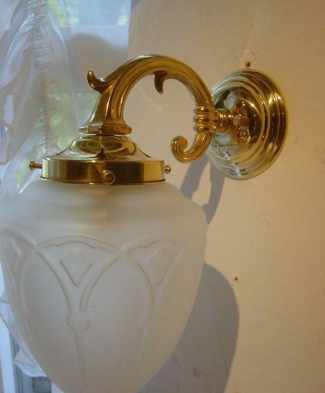 フレンチスタイルの真鍮ブラケットライトとレトロなガラスランプシェードCNA