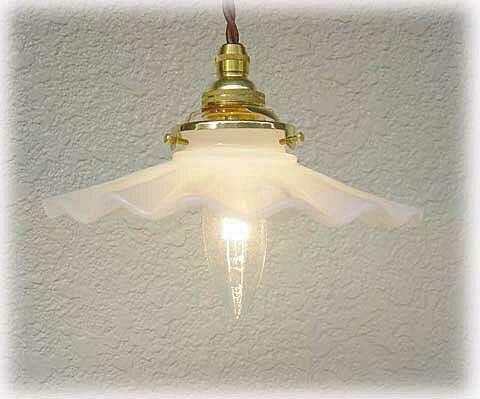 シェルをイメージした、可愛らしいミルクグラスのフリルシェード(シェル)はフランスアンティークな雰囲気が感じられる、ガラスランプシェードです。